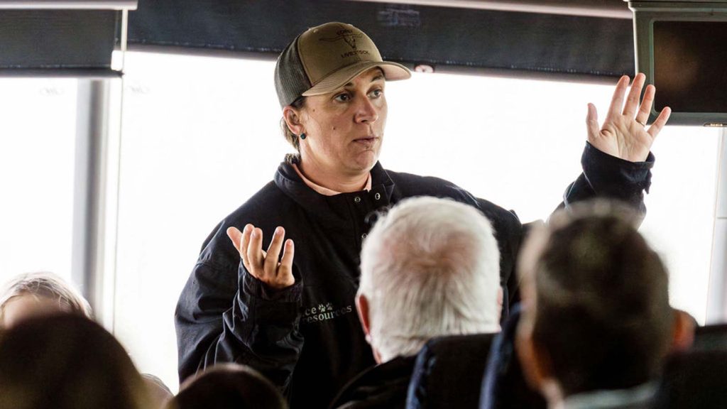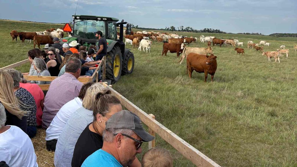 Participants on the Moose Jaw bus tour got to meet Cyle and Erika Stewart, Saskatchewan’s 2024 Outstanding Young Farmers and tour their cow/calf and yearling operation. In fact, tour participants got an extra adventure when the bus broke down and Cyle came out to help get it running again! Guests who attended the tour enjoyed seeing a working ranch in action, and remarked on how impressed they were with the Stewarts’ honest, down‑to‑earth explanations about beef production and environmental stewardship on their farm.
